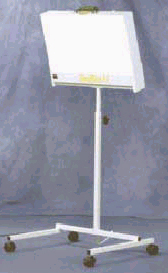 • SunRay Floor Stand. This adjustable height floor stand gives you more flexibility in your light box use. Its adjustable height places the center of your SunRay from 39" to 61" high. This is the same design that comes standard with the SunSquare+. Fits every SunRay, SunRay II, or SunRay II+ we've ever made. Casters are included so you can wheel your light box around on its stand. Weight: 15 lbs. Color: White with Black trim. Dimensions: 24" W x 21" D; 47" (lowest) - 69" (highest) H.